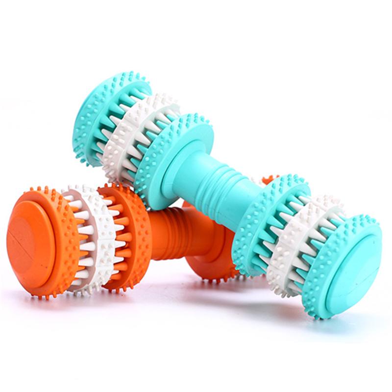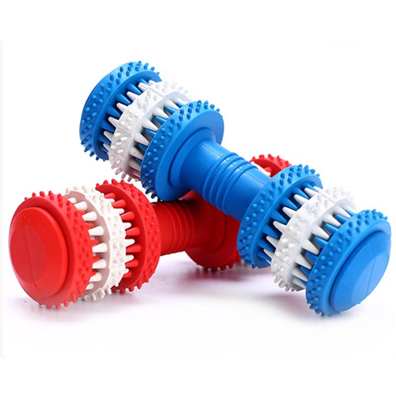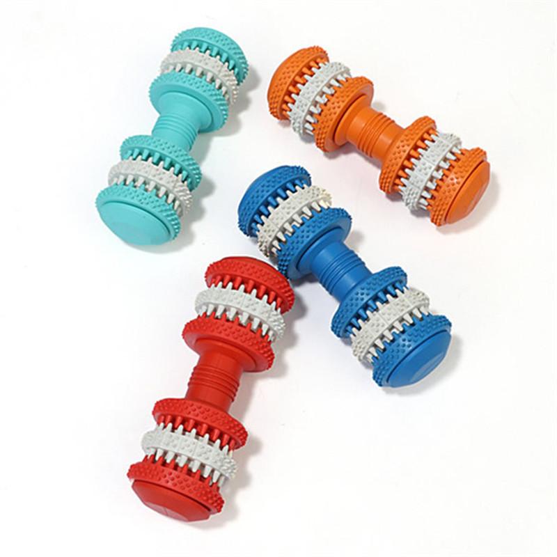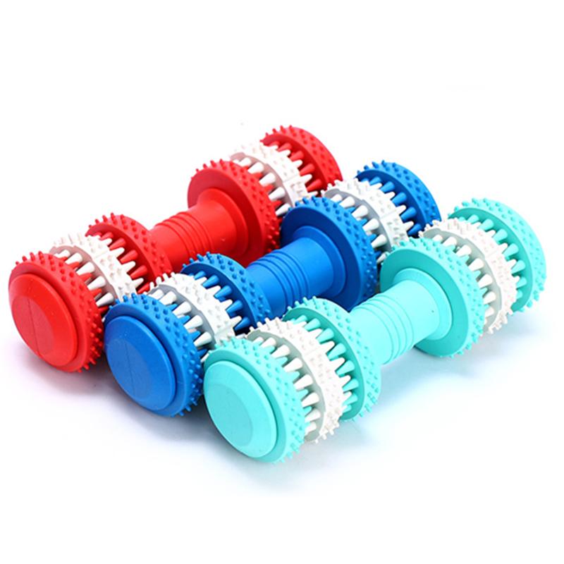 Rubber Dog Toy Molar Tooth Dumbbell Swivel Dental Bite Resistant Tooth Cleaning Dog Toy Balls for Pet Training with 4 Colors